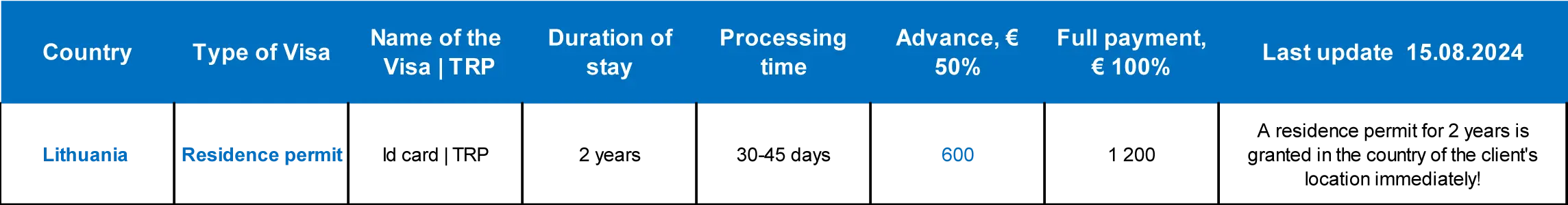 - A preliminary employment contract Tarpininkavimo raštas (letter of introduction). Valid for 30 days!
