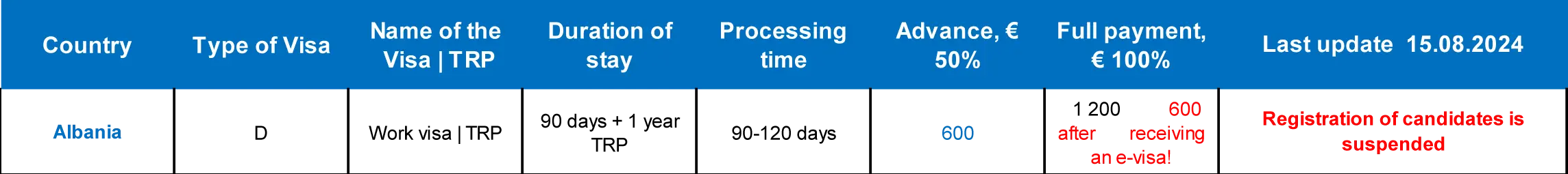 Job. Work Visa to Albania.